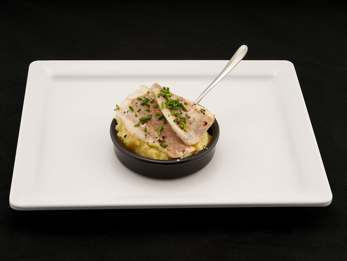 Filet de bar à l'huile de truffe et son écrasé de pommes de terre maison
