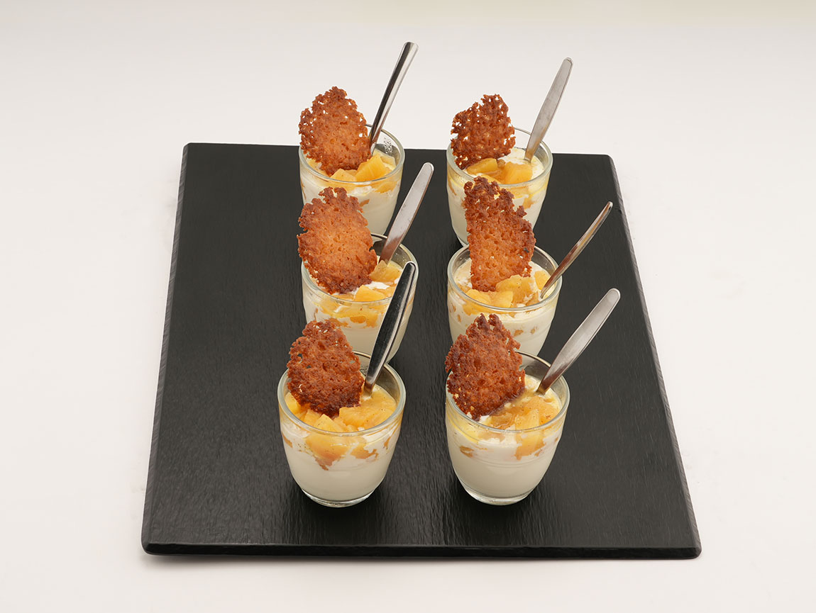 Panna cotta ananas rôti à la vanille et sa tuile au miel