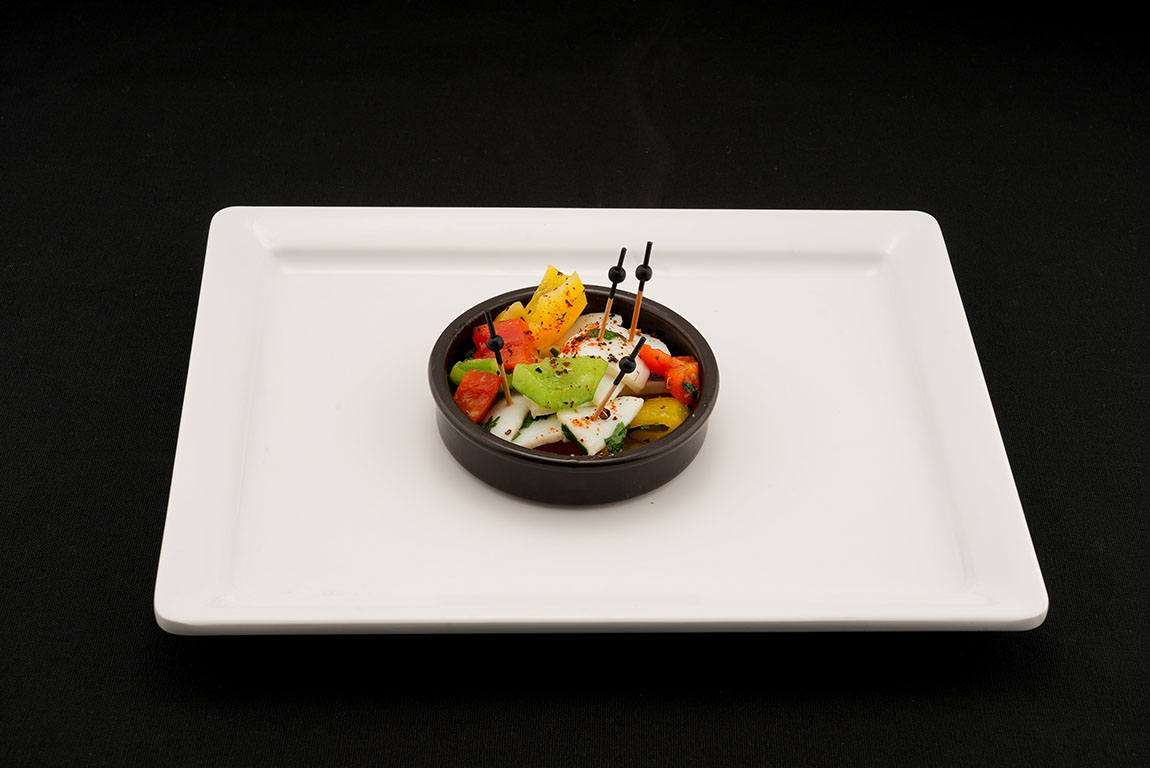 Cassolette de lamelles d'encornets à l'ail et au persil et poivron