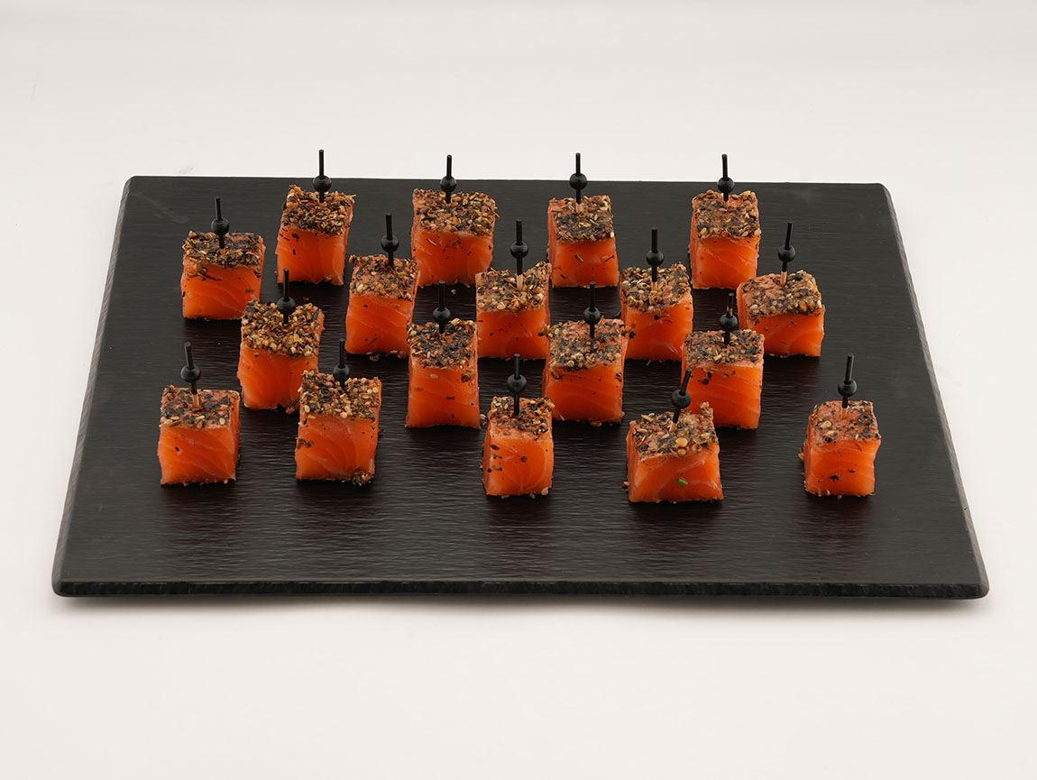 Cube de saumon façon gravlax, fumé aux épices Pharaon Dukkah
