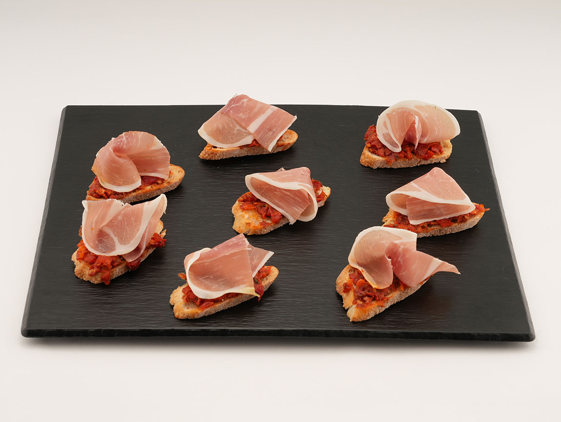 Toast de jambon de la vallée des Aldudes, sur tartare de tomate