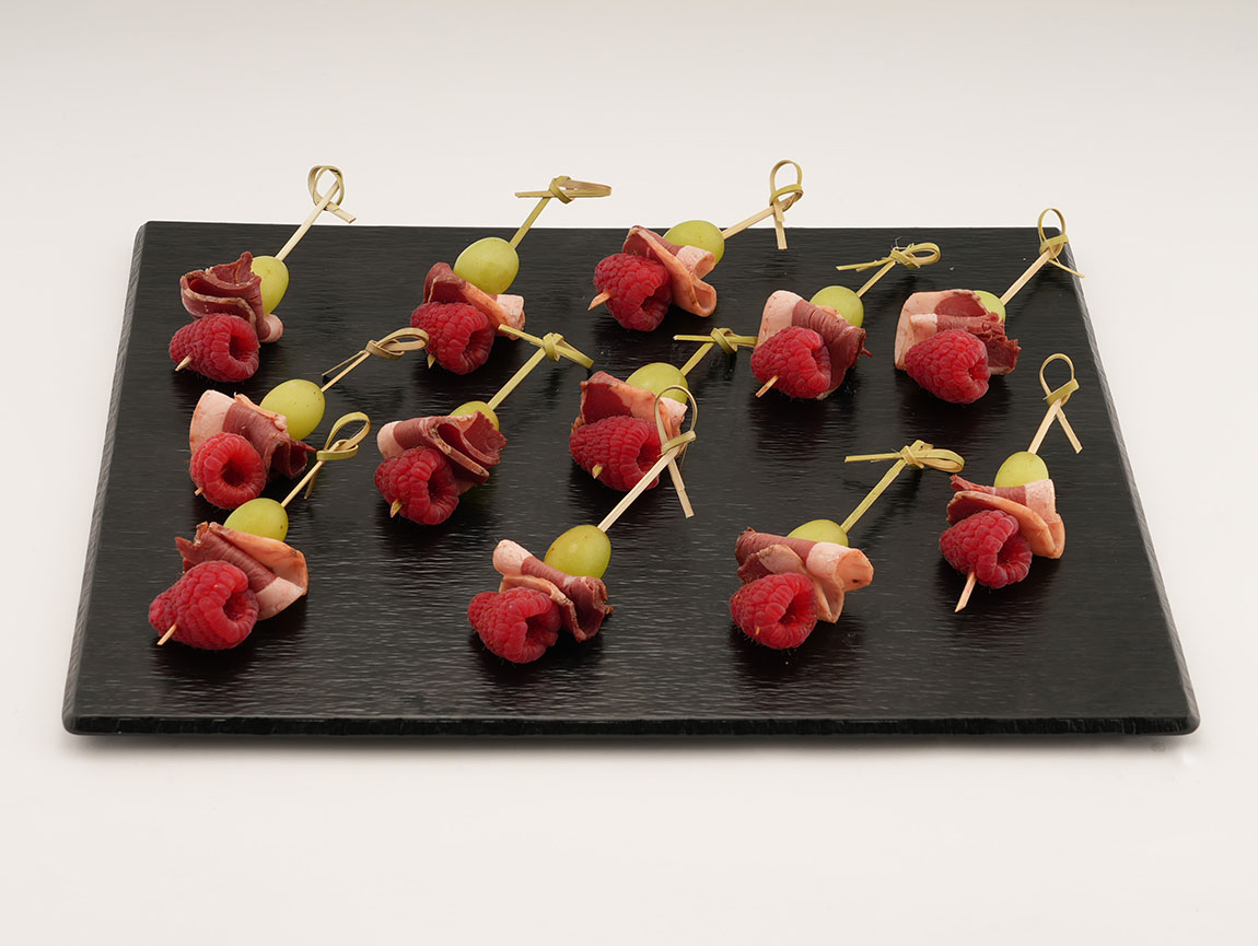 Brochette de raisin blanc sans pépin, magret séché et framboise