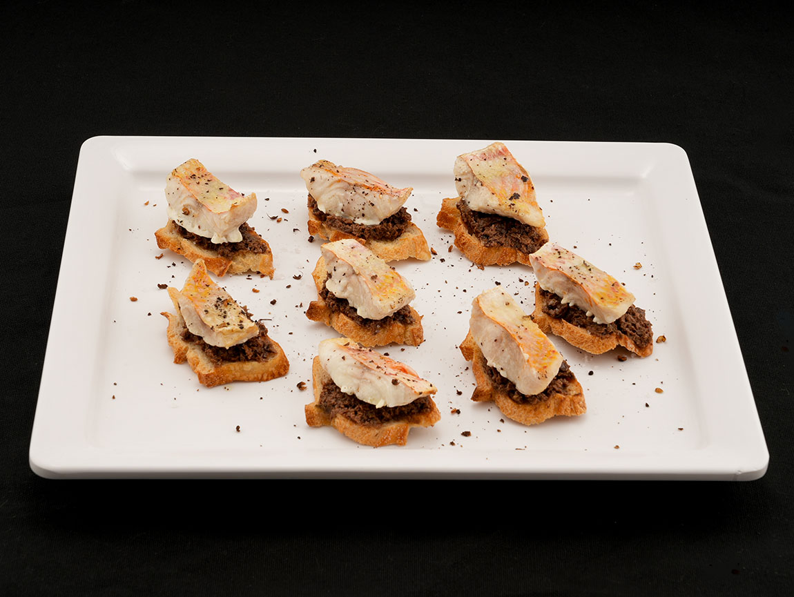 Toast de filet de rouget poêlé sur tapenade d'olives noires